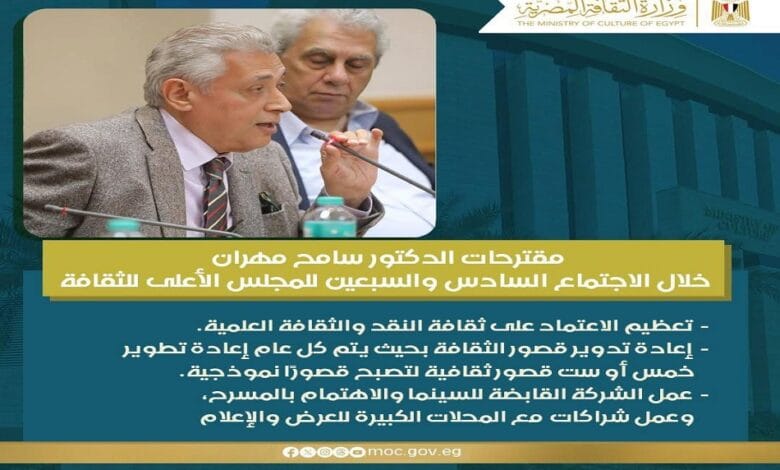 وأوضح مهران أن المرحلة الحالية تتطلب إعادة تدوير لقصور الثقافة بشكل دوري، مع التركيز على تطوير خمس إلى ستة قصور ثقافية سنوياً لتصبح نماذج رائدة قادرة على تقديم خدمات ثقافية متكاملة ومؤثرة. كما أشار إلى ضرورة تفعيل دور الشركة القابضة للسينما، مع إيلاء اهتمام خاص بالمسرح.