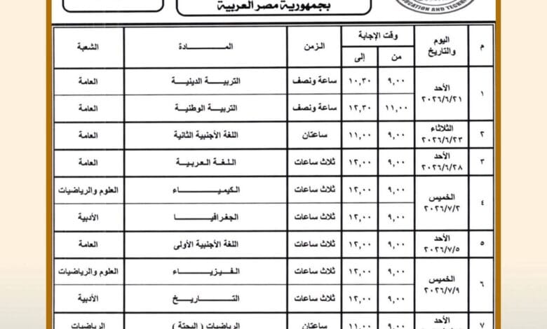 وزير التربية والتعليم يعتمد جدول امتحانات الثانوية العامة للدور الأول 2026