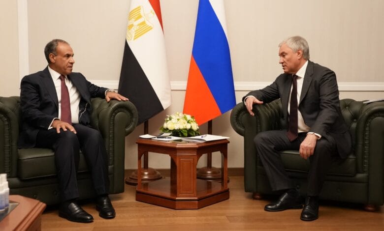 • التطلع لاستقبال رئيس مجلس الدوما في القاهرة: بما يسهم في دفع مسار العلاقات الثنائية.
