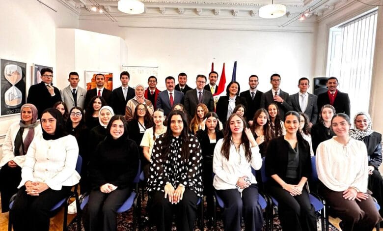 أتاح اللقاء للطلاب فرصة لطرح تساؤلاتهم حول آفاق العمل في مجال التحكيم الدولي، وشارك في النقاش المستشارة رضوى خليل، المسؤولة القانونية بالسفارة.