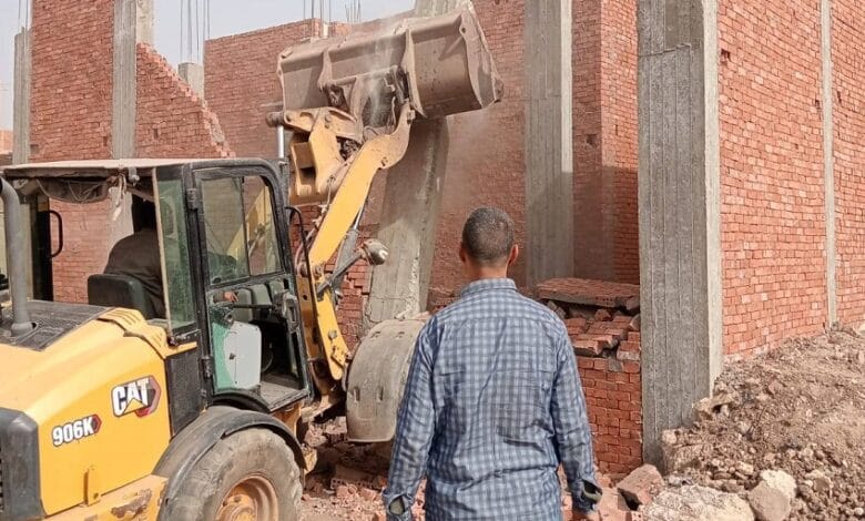 - قرية ميت حلفا: إزالة شدة خشبية وأعمدة وحوائط مخالفة معدة لاستكمال أعمال بناء غير قانونية.