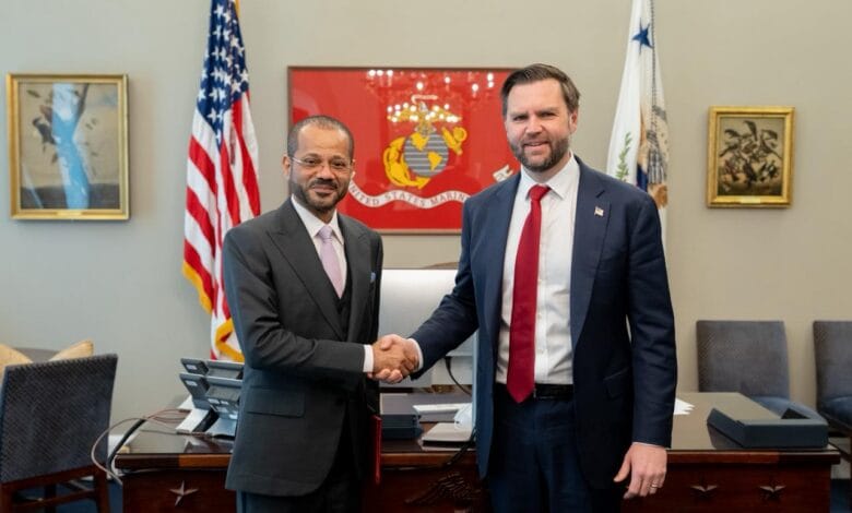 بحث وزير الخارجية العماني، بدر بن حمد البوسعيدي، في البيت الأبيض، مع نائب الرئيس الأمريكي، جيه دي فانس، المفاوضات الأمريكية الإيرانية غير المباشرة، وجهود التوصل إلى اتفاق حول الملف النووي الإيراني. وأكد الجانبان على عمق العلاقات الاستراتيجية بين سلطنة عُمان والولايات المتحدة، وحرصهما على تعزيزها بما يخدم الأمن والاستقرار في المنطقة.